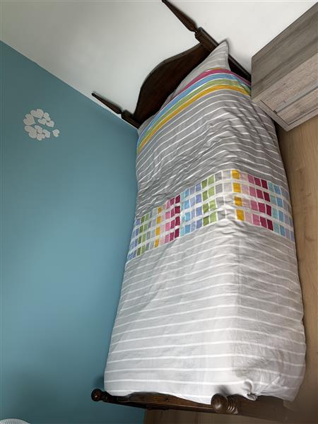 Kenmerken: Aantal personen: Eenpersoons, Bedbodem: Lattenbodem, Breedte: 90 cm, Kleur: Bruin, Lengte: 200 cm, Matras: Ander matras, Staat: Gebruikt, Kopen in Willebroek