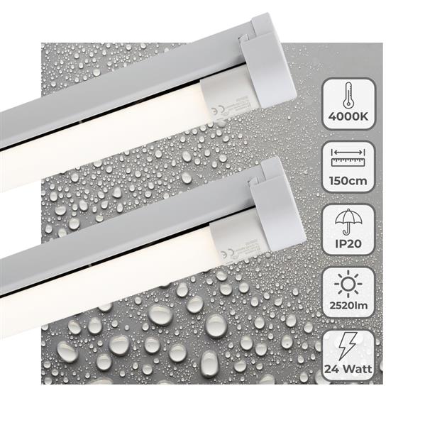 Deze compacte LED TL armaturen van 150 cm leveren elk 2520 lumen en vervangen traditionele 210-252W verlichting. Met een lichtopbrengst van 105 lumen per watt en een verbruik van slechts 24W is dit een energiezuinige oplossing voor binnenverlichting. De armaturen worden compleet geleverd inclusief LED TL buis met T8 fitting. In deze voordeelset krijg je direct twee armaturen.
