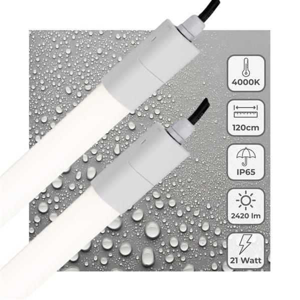 Dit waterdichte LED TL armatuur van 2420 lumen vervangt traditionele verlichting van 200-240 watt. Met IP65 bescherming is dit armatuur geschikt voor zowel binnen als buiten, beschermd tegen alle weersomstandigheden. De voordeelverpakking bevat 2 armaturen.
