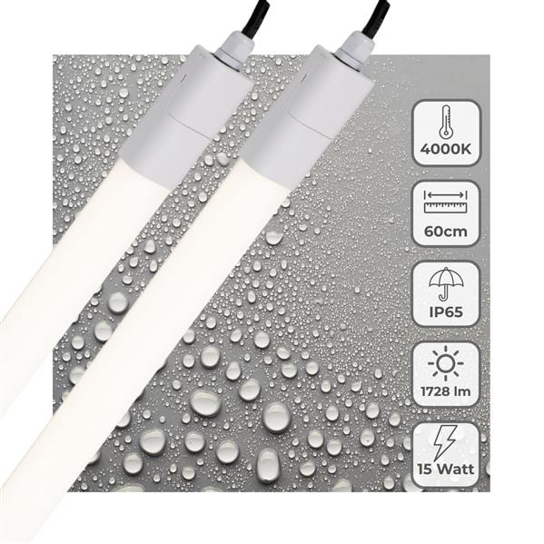 LED TL Armatuur 1725 lumen - 15W - Koelwit 4000K - 60cm - IP65 Waterdicht - IK06 - 2 stuks