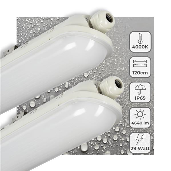 - LED TL Armatuur PRO 4640 lumen - 29W - Koelwit 4000K - 120cm - IP65 Waterdicht - IK08 Slagvast - 5 J