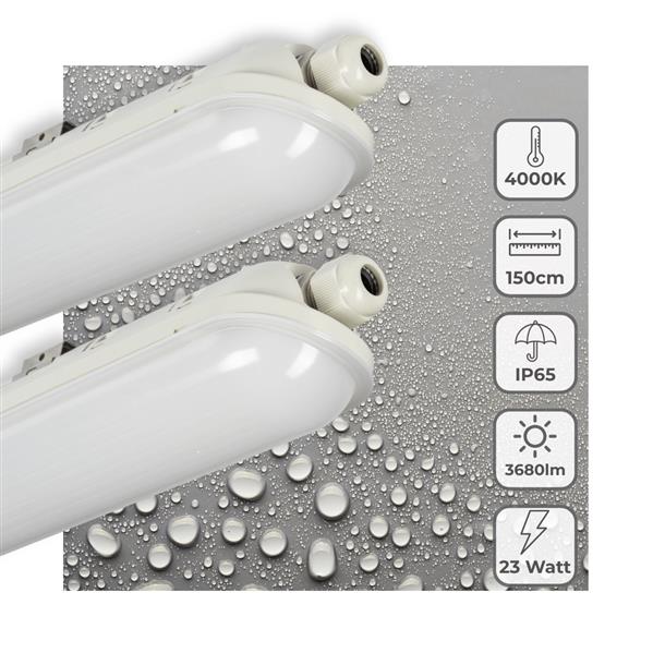 - LED TL Armatuur Compleet Koelwit 4000K - 23W 3680 lumen - 150cm IP65 Waterdicht IK08 - 2 stuks