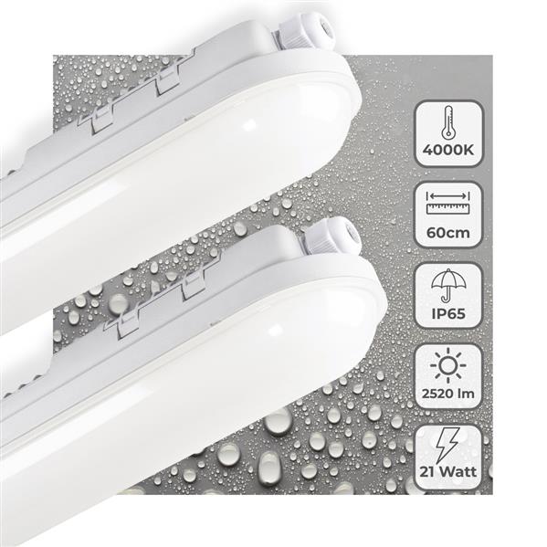 2 PACK - LED's Light Pro TL armatuur 60 cm – Geschikt voor binnen en buiten – 2500 lumen – IP65 wate