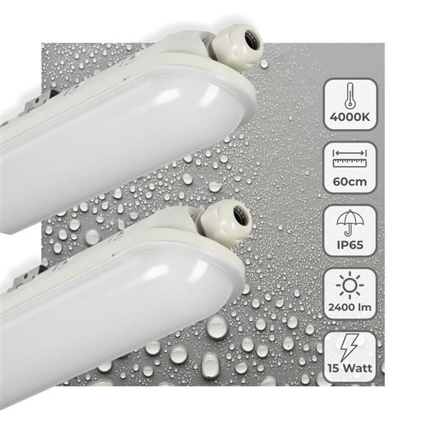 LED TL Armatuur 2400 Lumen - 15W - Koelwit - IP65 Waterdicht - 60cm - 2 stuks