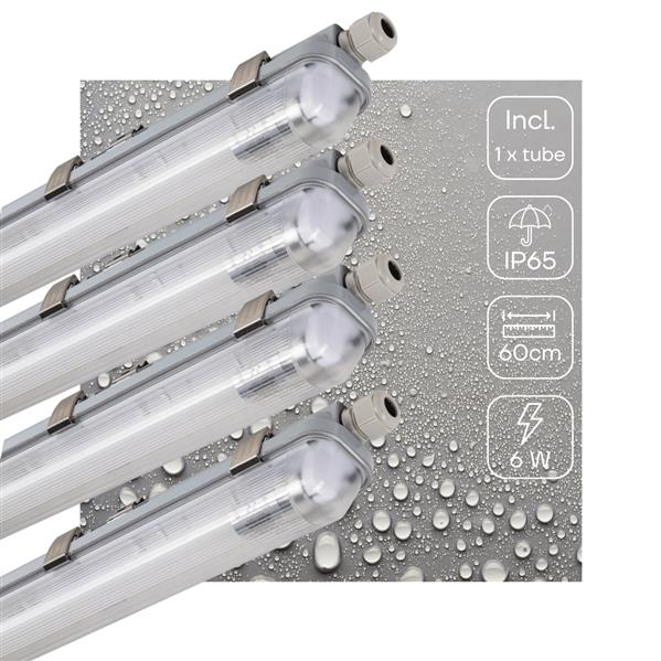 4 PACK - LED's Light Complete LED TL lamp met LED buis 60 cm - Binnen en buiten - 1100 lm - 1x6W