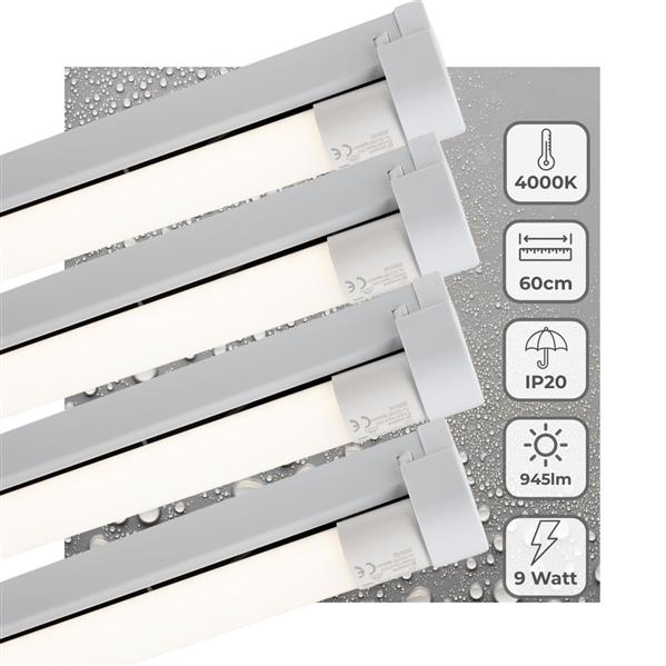 - LED TL Armatuur 945 Lumen - 9W - Koelwit 4000K - 60cm - IP20 - T8 Fitting - 4 Stuks