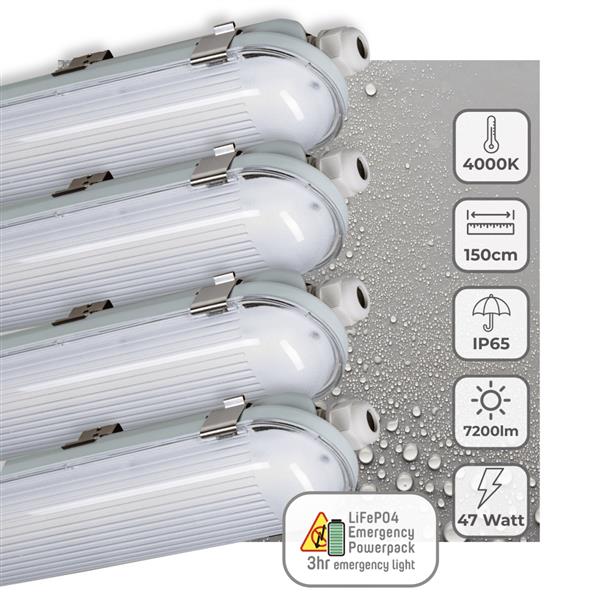 Dit LED's Light PRO LED TL-armatuur is uitgerust met een ingebouwde noodaccu. In het geval van stroomuitval zorgt deze accu ervoor dat de lamp tot 3 uur blijft schijnen, waardoor je verzekerd bent van continue verlichting wanneer je het het meest nodig hebt.