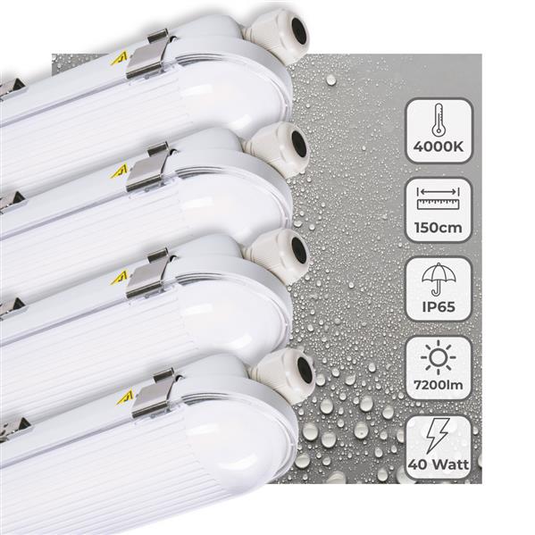 - LED TL Armatuur 7200 Lumen - 40W - Koelwit - IP65 Waterdicht - 150cm - 4 stuks
