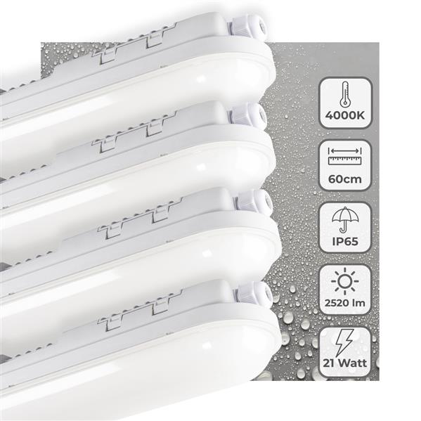 4 PACK - LED's Light Pro TL armatuur 60 cm – Geschikt voor binnen en buiten – 2500 lumen – IP65 wate