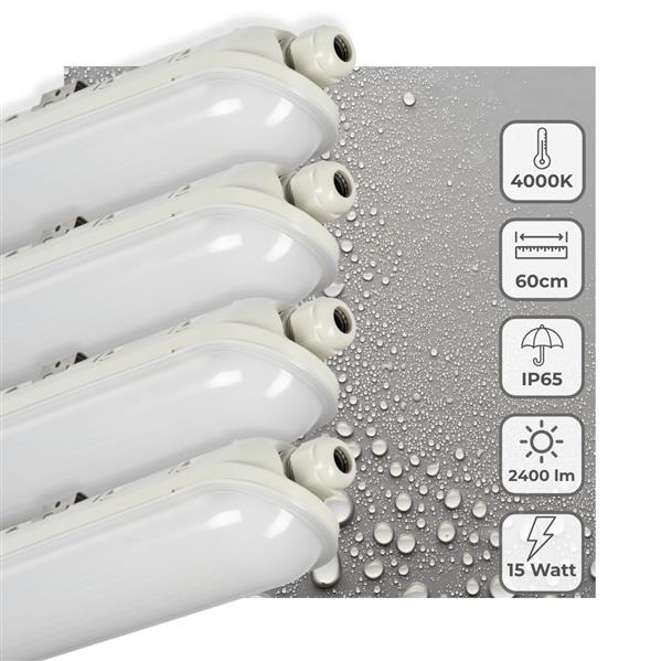 - Vochtbestendig LED-armatuur 2400 lumen - 15W - Koelwit 4000K - 60cm - IP65 - IK08 - 4 stuks