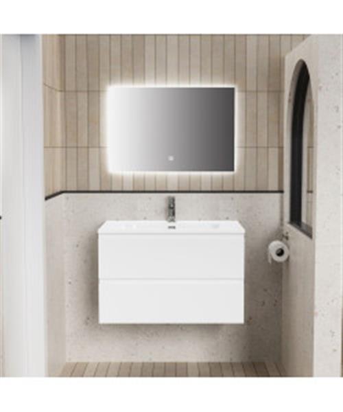 Badkamermeubelset BWS Liva Onderkast Wastafel en LED Spiegel 80 cm Glanzend Wit