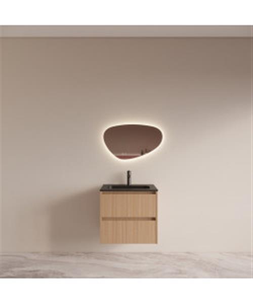 Badmeubelset BWS Riga met Asia Wastafel Zwart 60 cm Licht Eiken Japandi