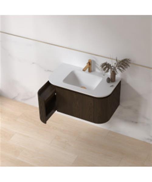 Dit meubel heeft een breedte van 80 cm en is gemaakt van gefineerd multiplex. De kast is waterdicht, dus ook geschikt voor in de badkamer. De donkere walnoot kleur geeft een mooi contrast met de witte wastafel. In de kast zijn lijnen gefreesd voor een ribbel effect, wat perfect past in de eigentijdse badkamer. Verder is de kast mooi afgewerkt met ronde hoeken. Zo kunt u zich niet aan een scherpe hoek stoten en het ziet het bovendien elegant uit! Ondanks de ronde hoeken bevat de kast maar liefst 3 laden, waardoor er optimaal gebruik gemaakt wordt van de ruimte.