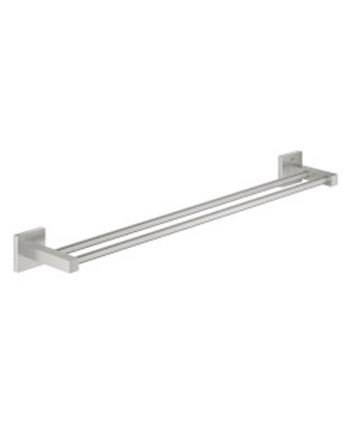 De GROHE Start Cube dubbele handdoekhouder is stijlvol, eenvoudig te monteren en gemaakt om lang mee te gaan. Kortom, een geweldige manier om je badkamer een snelle upgrade te geven. Het is vervaardigd van de beste materialen en vormt een perfecte aanvulling op elke moderne badkamer. En dankzij de verborgen bevestiging biedt het een prachtige afwerking die er echt professioneel uitziet. De dubbele handdoekhouder, die een handige lengte heeft van 600 mm (bruikbare lengte 600 mm), is ook voorzien van een duurzame, gemakkelijk te reinigen GROHE Long-Life Shine PVD-coating, die een tien keer hogere krasbestendigheid biedt dan gewoon chroom. Het zal er dus vele jaren zo goed als nieuw uit blijven zien. Maar vergeet vooral niet hoe eenvoudig het is om te monteren dankzij de schroeven en deuvels, die zijn inbegrepen. En als je graag een harmonieus badkamerontwerp wilt creëren, bekijk dan onze bijbehorende accessoires zoals de toiletrolhouder, toiletborstelset, badjashaak, handdoekring en hoekdouchemand.