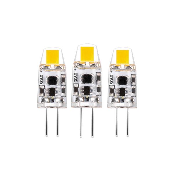 Deze LED G4 capsules werken op 12V en zijn de perfecte vervanger voor traditionele halogeen steeklampjes. Met slechts 1 watt verbruik leveren ze een lichtopbrengst van 95 lumen, vergelijkbaar met traditionele 10 watt halogeenlampen. De warmwitte kleurtemperatuur van 2700K zorgt voor een gezellige, huiselijke sfeer. Dankzij de brede stralingshoek van 330° verspreiden deze capsules het licht gelijkmatig in alle richtingen. De compacte afmetingen (10mm diameter, 30mm hoogte) en het lichte gewicht van slechts 2 gram maken ze ideaal voor kleine armaturen.