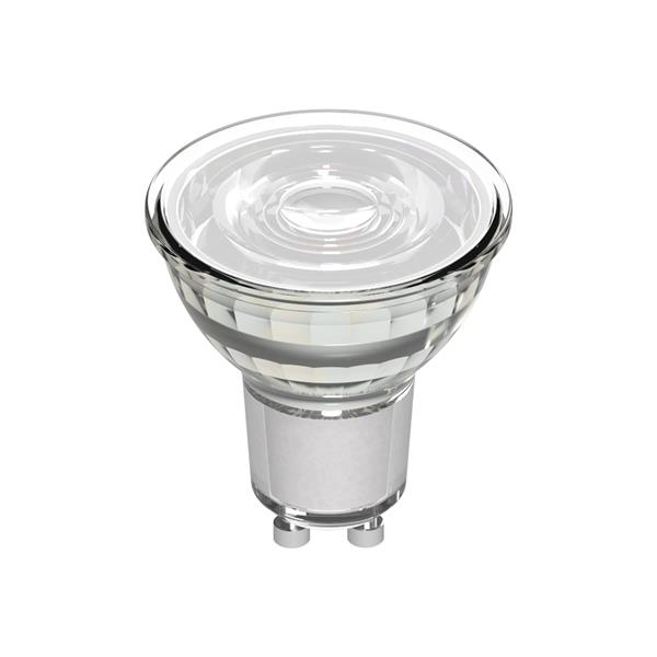 De spot heeft het standaard MR16 formaat met een diameter van 50mm en een hoogte van 53mm, waardoor hij in vrijwel alle GU10 armaturen past. De behuizing van glas met heldere afwerking en zilverkleurige reflector zorgt voor optimale lichtbundeling. Met een gewicht van 54 gram is de spot stevig maar niet te zwaar voor inbouwspots. De