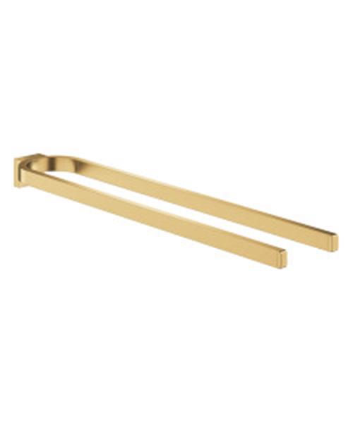 Met GROHE Selection accessoires creëer je een uniforme stijl in je badkamer. Zo past de GROHE Selection handdoekhouder uitstekend in een luxe badkamerontwerp. Gekleurd in cool sunrise geborsteld (mat goud) en uitgevoerd in een strak design voeg je pure klasse toe aan je badkamer. De handdoekhouder is uitgerust met twee stevige stangen waar zowel je natte als droge handdoeken kunt ophangen. De handdoekhouder is voorzien van een krasbestendige beschermlaag waardoor de mat gouden kleur mooi van kwaliteit blijft. De handdoekhouder met verborgen bevestiging is ontworpen voor een naadloze wandmontage en ontzettend makkelijk te monteren. Alle accessoires uit de GROHE Selection voeg je eenvoudig toe aan je badkamerinterieur. Zo kun je kiezen uit een glazen zeepdispenser, make-up spiegel en tal van wandhaken in dezelfde stijl.