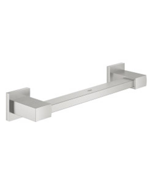Stijlvol en sterk! Dat is de GROHE Start Cube handgreep, een stoer accessoire dat ook nog eens zorgt voor meer veiligheid. Het is vervaardigd van de beste materialen waardoor het perfect past in elke moderne badkamer, en dankzij de verborgen bevestiging heeft het een prachtige afwerking die er echt professioneel uitziet. De handgreep, die een handige lengte van 354 mm heeft (bruikbare lengte 300 mm), is ook voorzien van een duurzame, gemakkelijk te reinigen GROHE Long-Life Shine PVD-coating, die een tien keer hogere krasbestendigheid biedt dan gewoon chroom. Maar vergeet vooral niet hoe eenvoudig het is om te monteren dankzij de schroeven en deuvels, die zijn inbegrepen. En als je graag een harmonieus badkamerontwerp wilt creëren, bekijk dan onze bijbehorende accessoires zoals de toiletborstelset, toiletrolhouder, badjashaak, handdoekring, handdoekhouder en hoekdouchemand.
