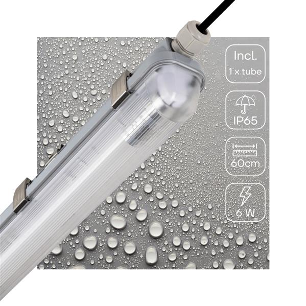 LED TL Armatuur 1110 lumen - 6W - Koelwit 4000K - 60cm - IP65 Waterdicht - IK08 Slagvast - Verwissel