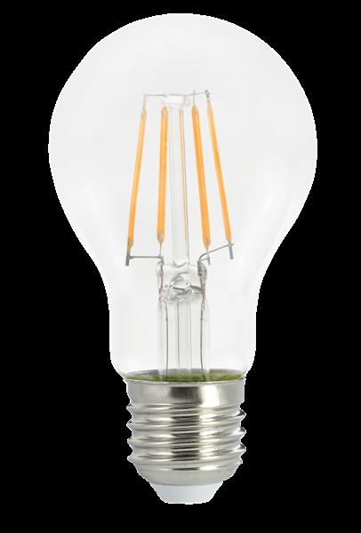 Deze LED filament lamp E27 is de klassieke gloeilampvervanger met moderne LED technologie. Met een verbruik van slechts 7W levert de lamp een lichtstroom van 806 lumen, ideaal voor algemene verlichting in woonkamers, slaapkamers en kantoren. Deze lamp vervangt een traditionele 60W gloeilamp volgens de officiële verklaring van equivalente kracht. De E27 fitting maakt de lamp geschikt voor vrijwel alle standaard armaturen. De A60 peervorm met helder glas geeft een klassieke uitstraling.