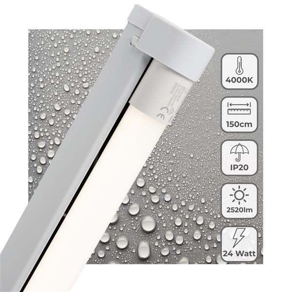 Deze complete LED TL armatuur van 150cm wordt geleverd inclusief LED TL buis en is ideaal voor werkplaatsen, garages, magazijnen en opslagruimtes. De armatuur levert 2520 lumen koelwit licht en verbruikt slechts 24W. Met een lichtopbrengst van 100 lumen per watt is deze armatuur zeer energiezuinig. De armatuur wordt compleet geleverd met LED TL buis, bevestigingsmateriaal en handleiding voor eenvoudige installatie.