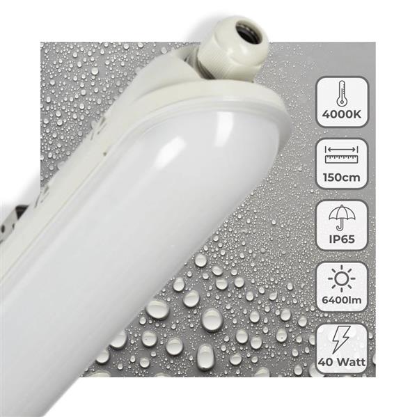 Met een indrukwekkende lichtopbrengst van 6400 lumen levert de LED's Light Pro Premium LED TL armatuur van 150 cm een overvloed aan helder licht, perfect voor ruimtes waar een hoge lichtsterkte nodig is. Dit maakt deze LED TL lamp ideaal voor grote werkplaatsen, magazijnen, sporthallen of andere hoge ruimtes waar je veel licht nodig hebt. Ondanks de krachtige verlichting verbruikt deze lamp slechts 40 watt , wat hem zowel efficiënt als energiezuinig maakt.