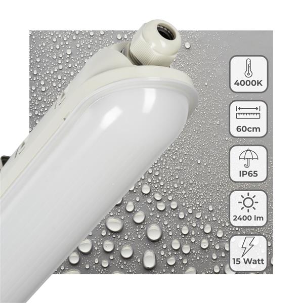 LED TL Armatuur 60cm 2400 lumen - 15W - Koelwit 4000K - IP65 Waterdicht - 160lm/W