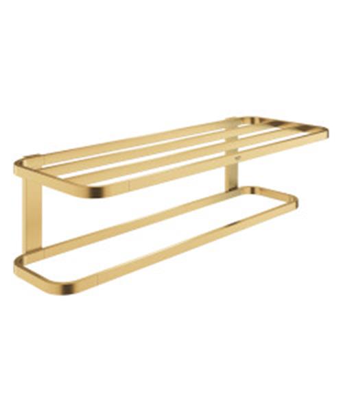 Het GROHE Selection multi-handdoekenrek is een van de talrijke accessoires om je badkamer eigentijds in te richten. Het multi-handdoekenrek is uitgevoerd in een ruimtebesparend design en heeft meerdere opbergmogelijkheden. Zo bewaar je schone handdoeken op het opbergrek laat je handdoeken dragen op de handdoekstang. De unieke kleur van cool sunrise geborsteld (mat goud) geeft het badkameraccessoire een mondaine look. En de krasbestendige GROHE Long-Life beschermlaag zorgt ervoor dat deze unieke kleur mooi behouden blijft. Het multi-handdoekenrek met verborgen bevestiging is eenvoudig te monteren waarbij de wandmontage naadloos aansluit op de muur. In de collectie van GROHE Selection vind je tal van hoogwaardige accessoires met dezelfde look zoals sierlijke wandhaken, een toiletborstelset of een make-up spiegel.