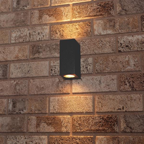 Door gebruik van zorgvuldig gekozen materialen waaronder aluminium en gehard glas, profiteer je van een extra lange levensduur. De muurlamp kun je aan je buitenmuur bevestigen. Ook kun je de wandlamp binnen gebruiken in je gang, hal of woonkamer. Iedere wandlamp is voorzien van twee GU10 fittingen waar je een lichtbron naar wens kunt plaatsen. Je kunt er bijvoorbeeld voor kiezen om een spotje met warm wit licht te plaatsen, koud wit licht of een slim GU10 lampje. Met een slim GU10 lampje kun je de lamp op afstand vanaf je mobiel bedienen. De muurlamp is uitgerust met twee GU10 fittingen die geschikt zijn voor ledlampen, halogeen, gloeilampen en smartlampen tot maximaal 35W.