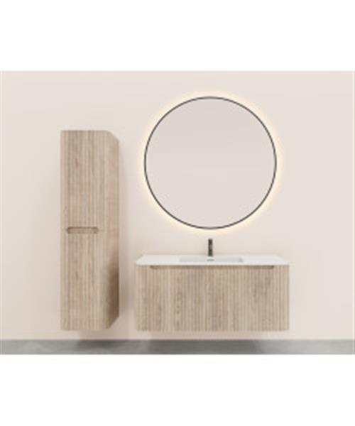 Onderkast Wiesbaden Sulora 120x48 cm Afgeronde Hoeken Geribbeld Met 1 Lade 1 Uitsparing Licht Eiken