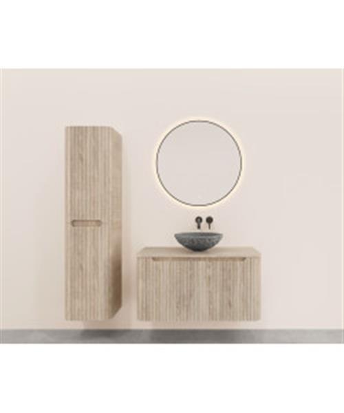 Onderkast Wiesbaden Sulora 80x48 cm Afgeronde Hoeken Geribbeld Met 1 Lade 1 Uitsparing Licht Eiken