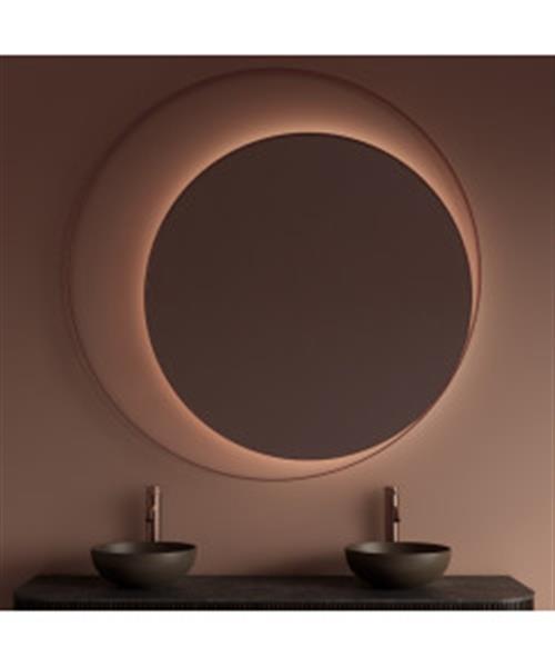 Spiegel Gliss Design Kosmos Koper Rosé Rond met Frame en Indirecte LED Verlichting 120 cm