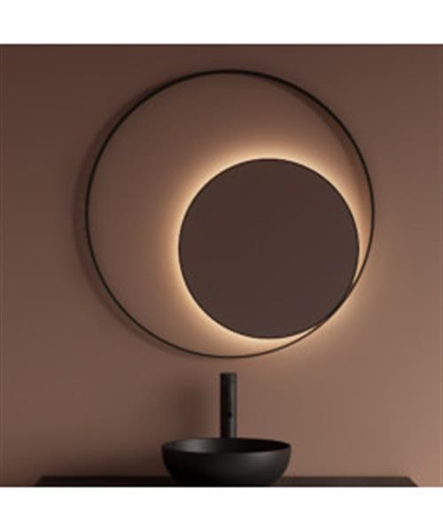 Spiegel Gliss Design Kosmos Mat Zwart met Frame en Indirecte LED Verlichting 90 cm