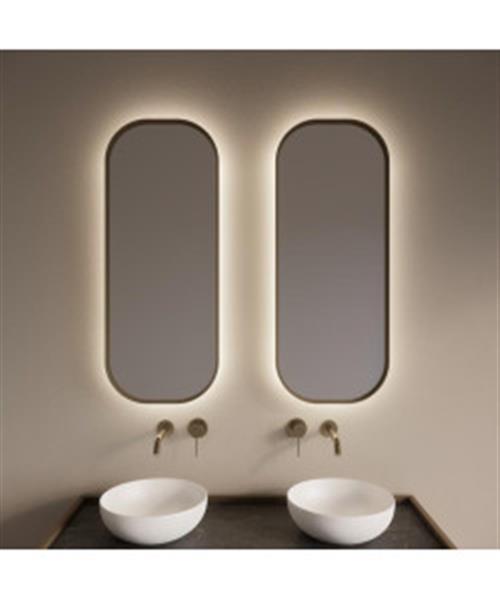 Spiegel Gliss Design Plato met Indirecte LED Verlichting en Verwarming 40x100cm Mat Goud