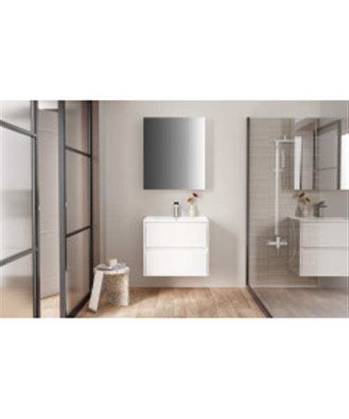 Spiegelkast BWS Hayat 2 Assymetrische Deuren 60x70x15cm Glanzend Wit