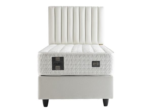 Het opberg boxspring heeft een strak hoofdbord met verticale banen. Het is gestoffeerd met zachte TEDDY meubelstof in de tijdloze kleur (gebroken) wit. Dankzij het mechanische veersysteem kunt u het matras 7-slags pocketvering met koudschuim eenvoudig optillen. Hierdoor ontstaat een zee aan opbergruimte onder het hele slaapgedeelte! In dezelfde stoffering en kleur als het bed kunnen we u een bijpassend nachtkastje (voorzien van twee lades) aanbieden. De Teddy boxspring is ook verkrijgbaar als 2-persoonsbed in de breedtematen 140, 160 en 180 cm.