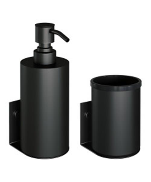 Zeepdispenser en Beker BRAUER Model A Incl. Wand Ophanging en Magnetisch opzetvlak Mat Zwart