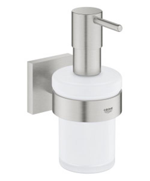Een minimalistisch design en verrassend eenvoudig te monteren! Dat is de GROHE Start Cube zeepdispenser met houder, die de stijl en hygiëne van je badkamer in een handomdraai een boost geeft. Het heeft een roestvrijstalen uiterlijk en is in Duitsland vervaardigd van de beste materialen, waardoor het perfect past in elke moderne badkamer. En dankzij de verborgen bevestiging biedt het een prachtige afwerking die er echt professioneel uitziet. De set is ook voorzien van een GROHE Long-Life Shine PVD-afwerking: een duurzame, gemakkelijk te reinigen coating die een tien keer hogere krasbestendigheid biedt dan gewoon chroom. Hierdoor ziet het er jarenlang onberispelijk uit. Maar vergeet vooral niet hoe eenvoudig het is om te monteren! Het kan gewoon aan de muur worden vastgeschroefd (schroeven en deuvels zijn inbegrepen) of, om het nog gemakkelijker te maken, kan het ook worden vastgelijmd! Het enige dat je nodig hebt, is GROHE QuickGlue (voor één montageplaat 41127000, apart verkrijgbaar). Raadpleeg onze QuickGuide en QuickVideo om te zien hoe eenvoudig het is om te monteren. Er is ook een reservedispenser beschikbaar (41188000). Er is ook een reservedispenser beschikbaar (41188000). En als je graag een harmonieus badkamerontwerp wilt creëren, bekijk dan onze bijbehorende accessoires zoals de toiletrolhouder, toiletborstelset, badjashaak, handdoekring, handdoekhouder en hoekdouchemand. GROHE Start Cube - een collectie minimalistische accessoires die je badkamer een instant upgrade geven!